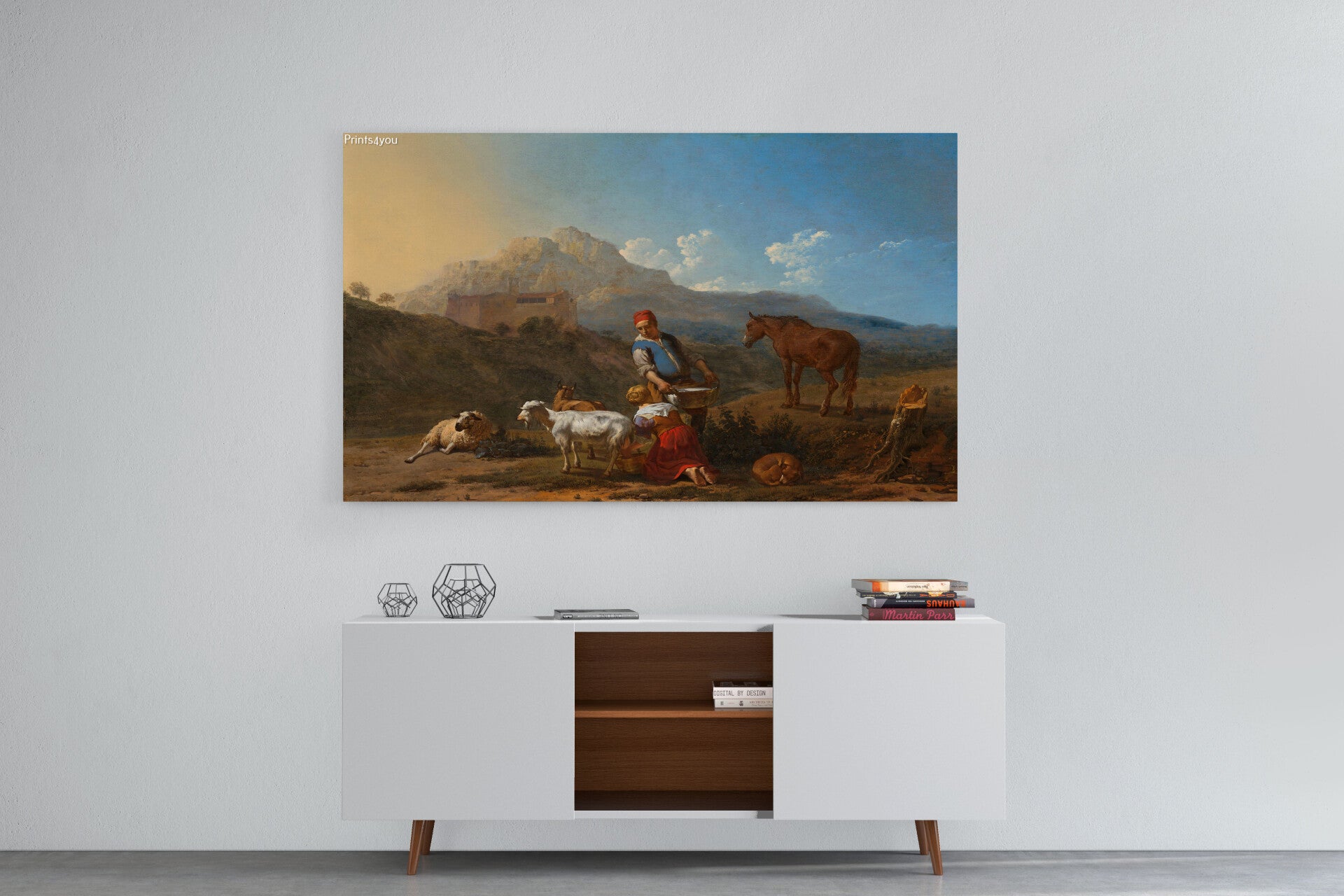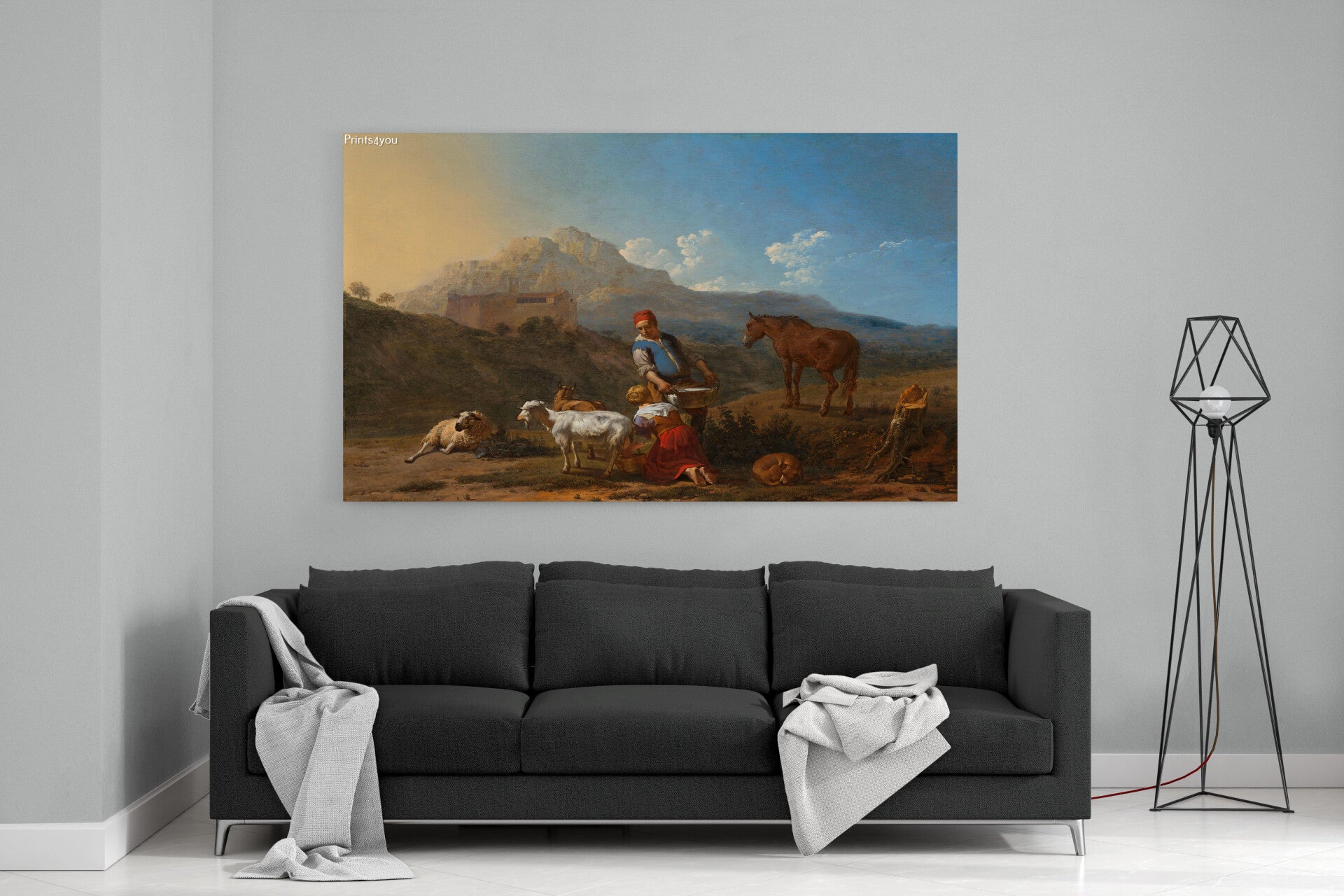 Italiaans landschap met geitenmelkster