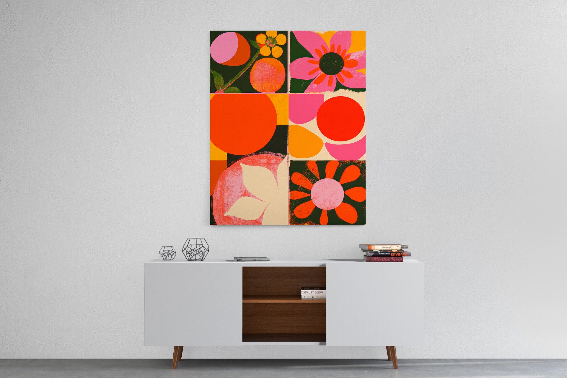 Kleurrijk patroon met bloemen en geometrische vormen