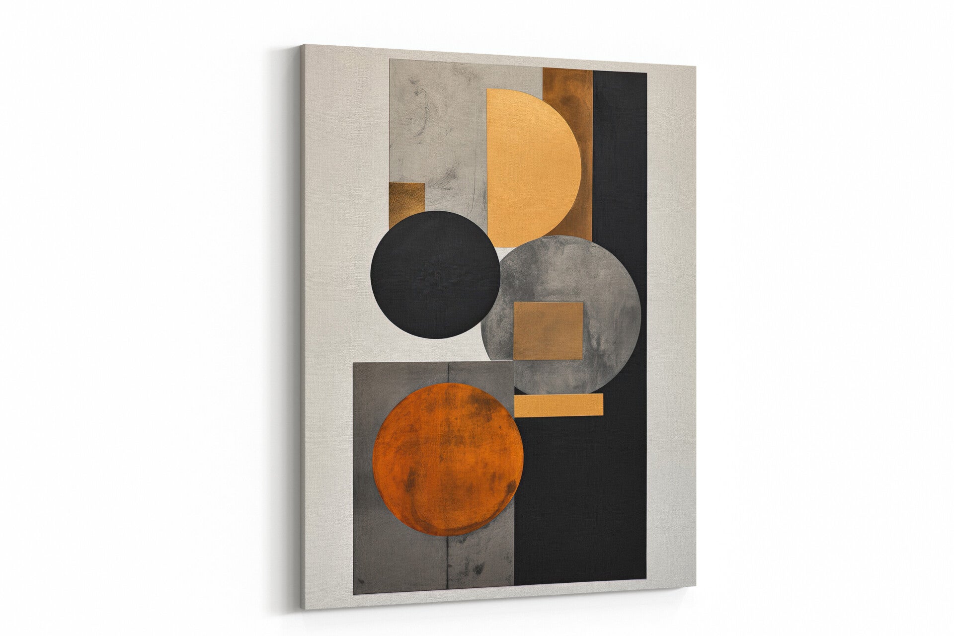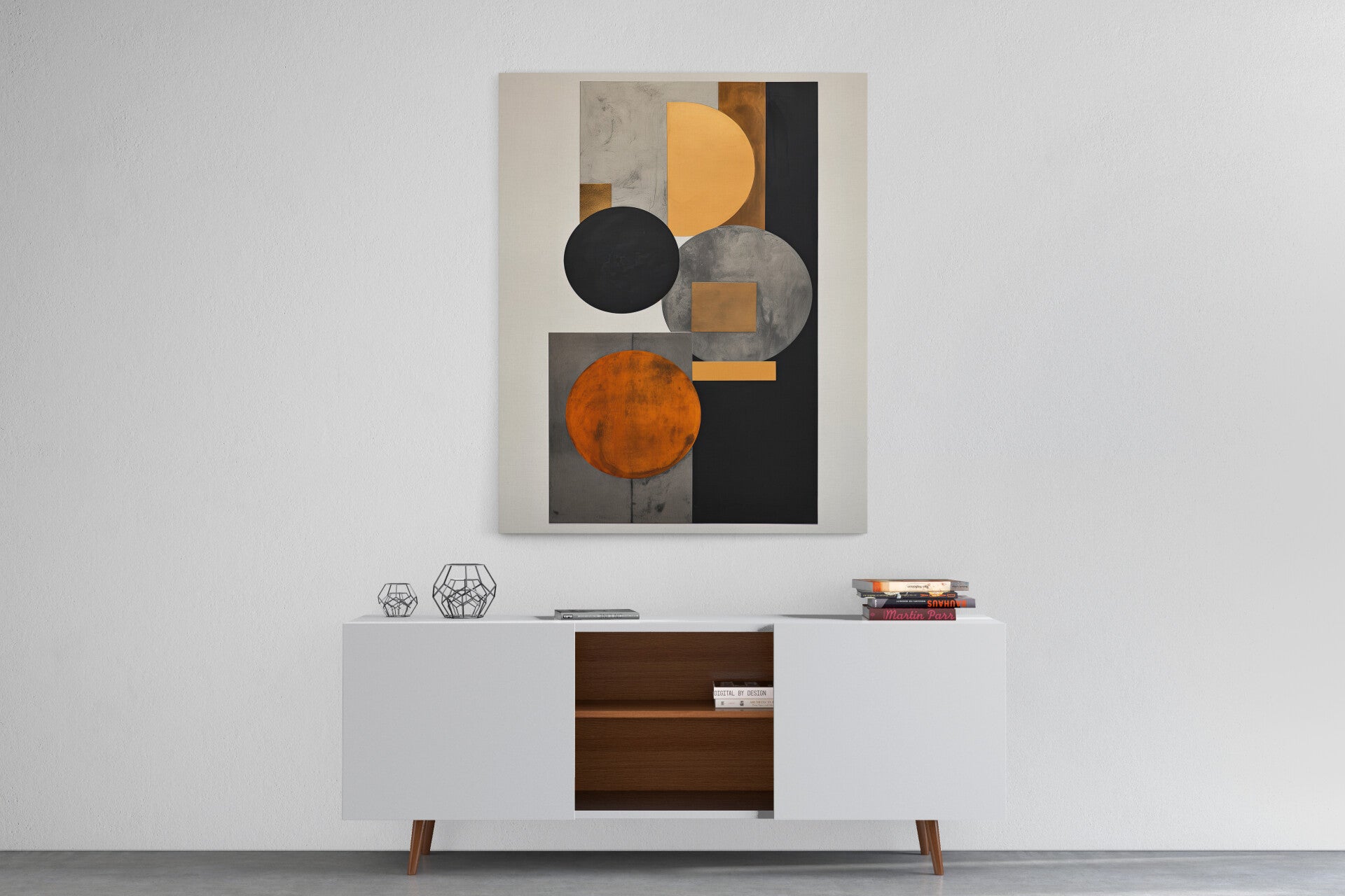 Combinatie van ronde en rechthoekige vormen met warme tinten