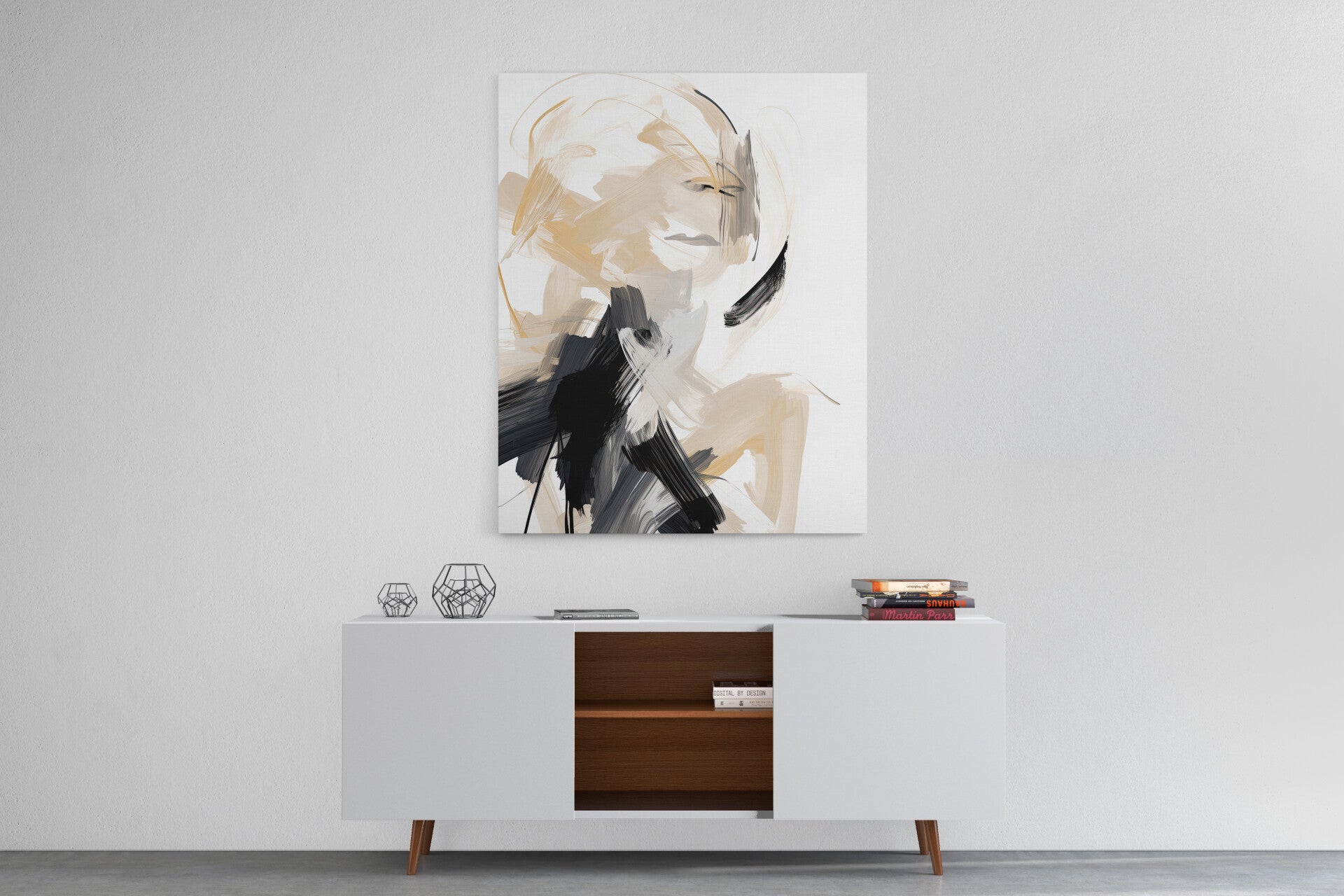 Abstracte compositie met zachte en harde penseelstreken gecombineerd