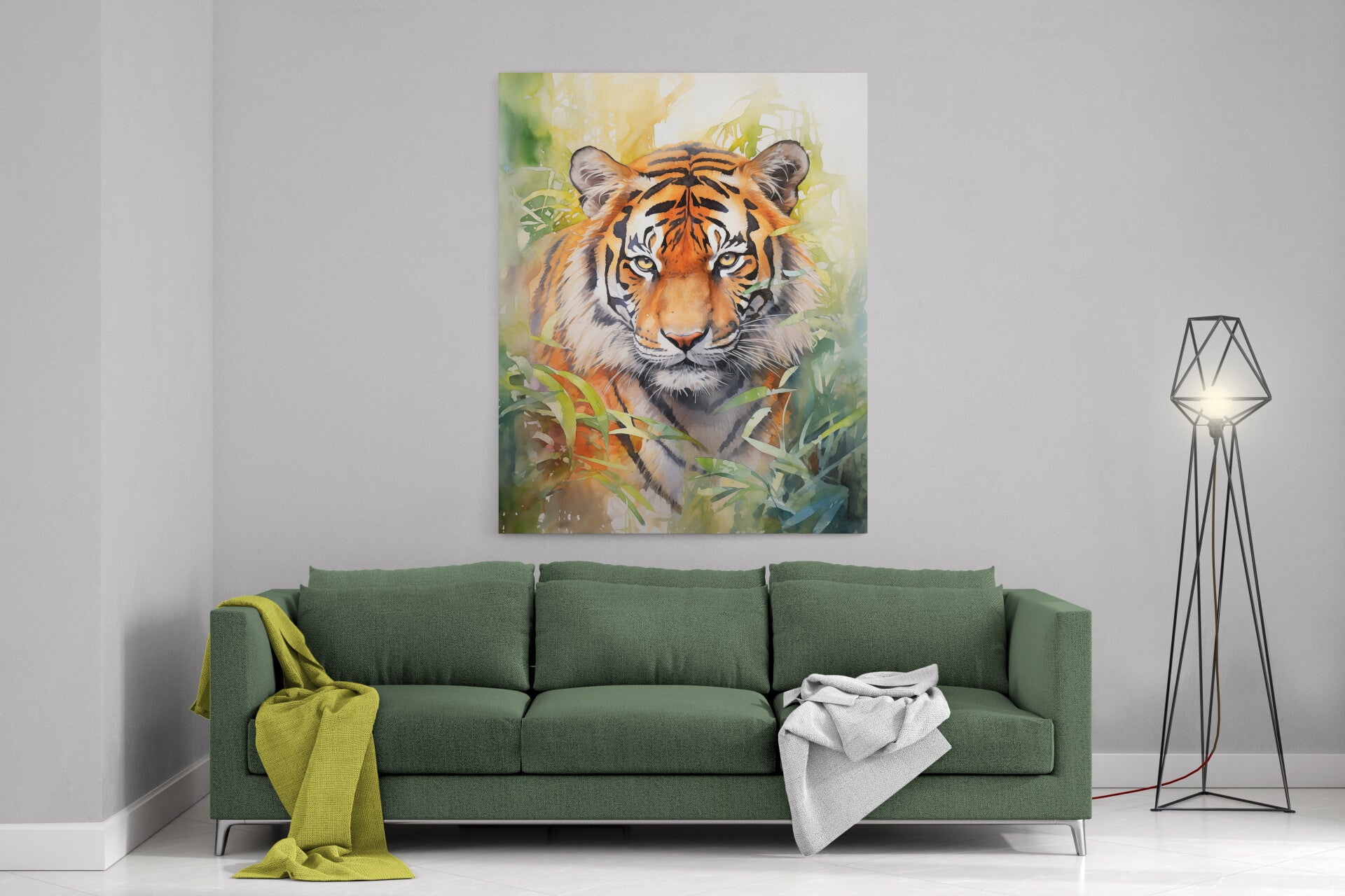Een tijger kijkt recht vooruit, krachtig en mysterieus