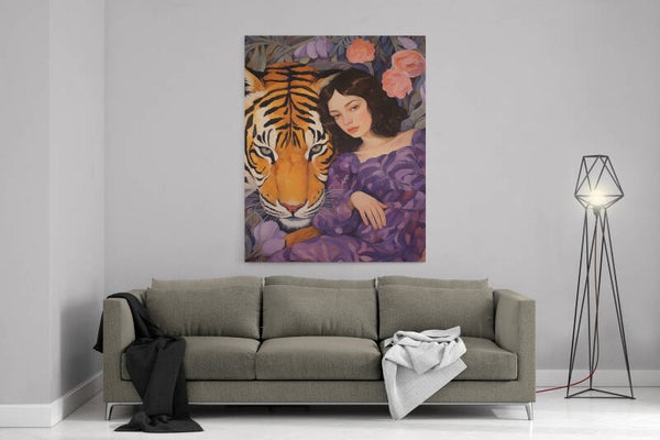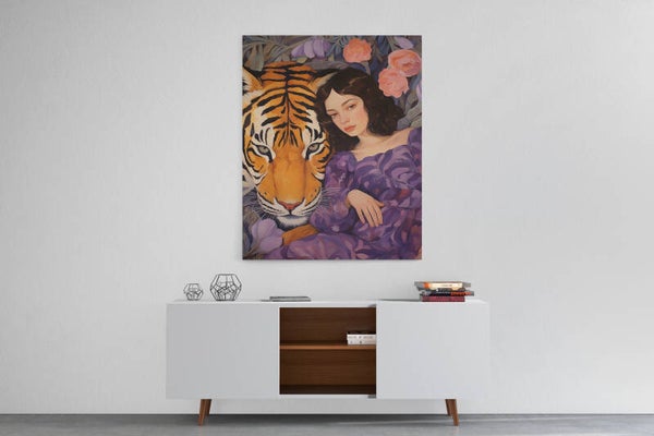 Mystiek portret van een vrouw naast een tijger