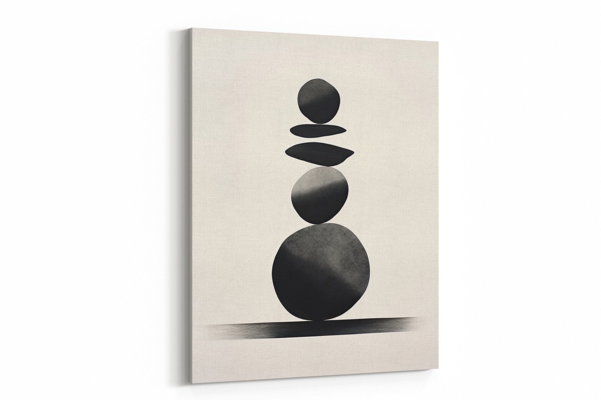 Een compositie van gestapelde zwarte cirkels, symbool voor evenwicht