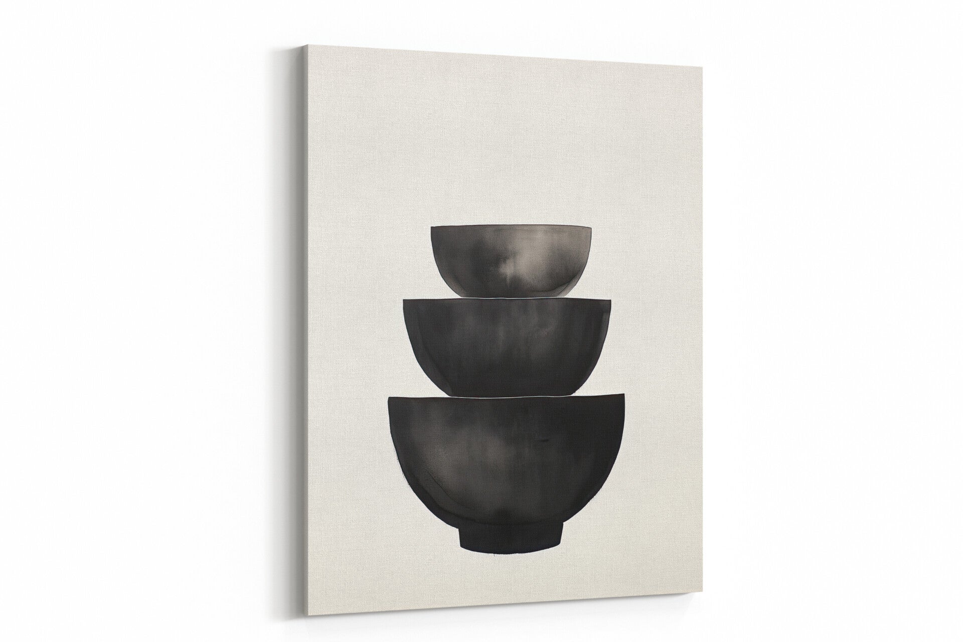 Drie opgestapelde zwarte kommen in minimalistische stijl