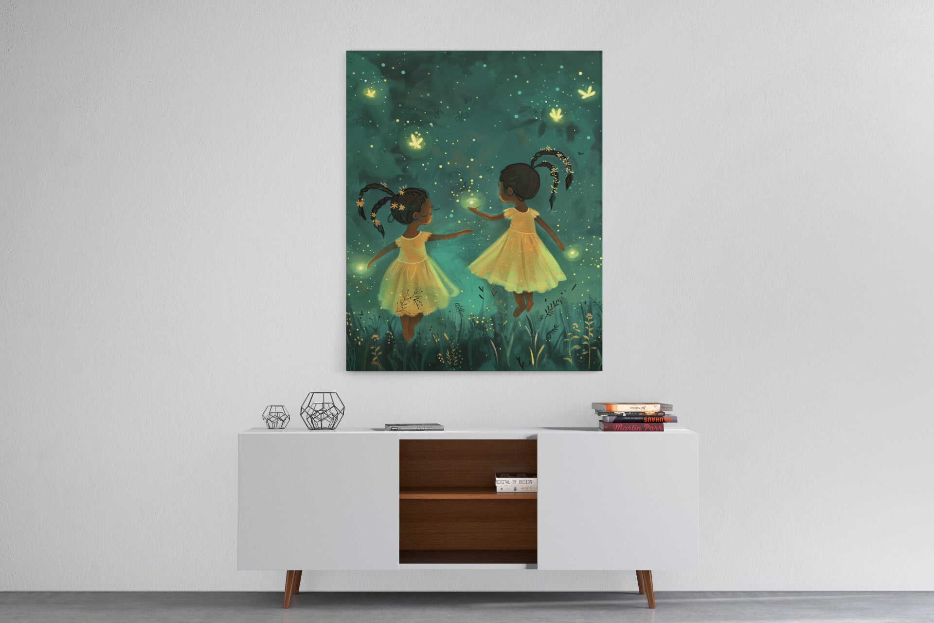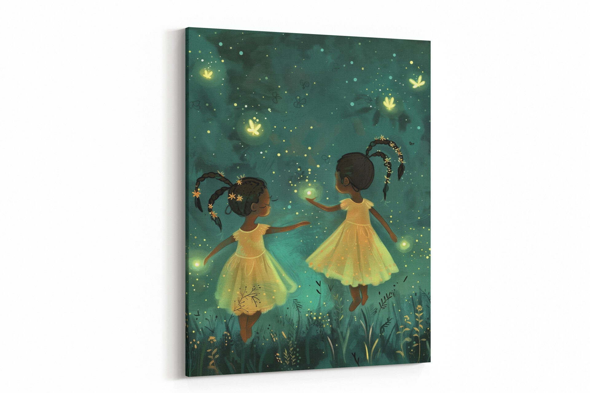 Twee meisjes die samen dansen in een betoverend nachttafereel