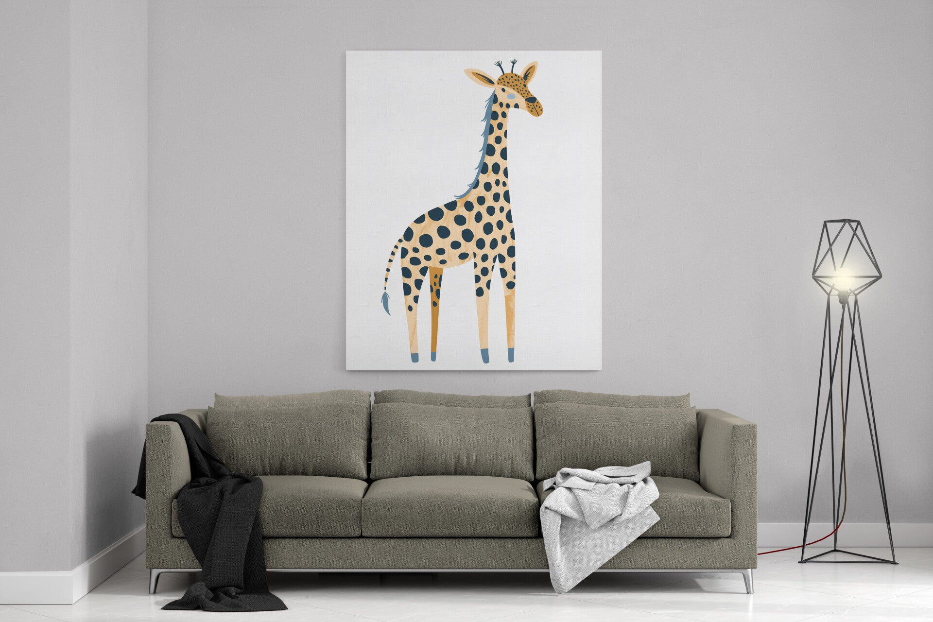 Een vrolijke giraffe met speelse stippen op zijn vacht