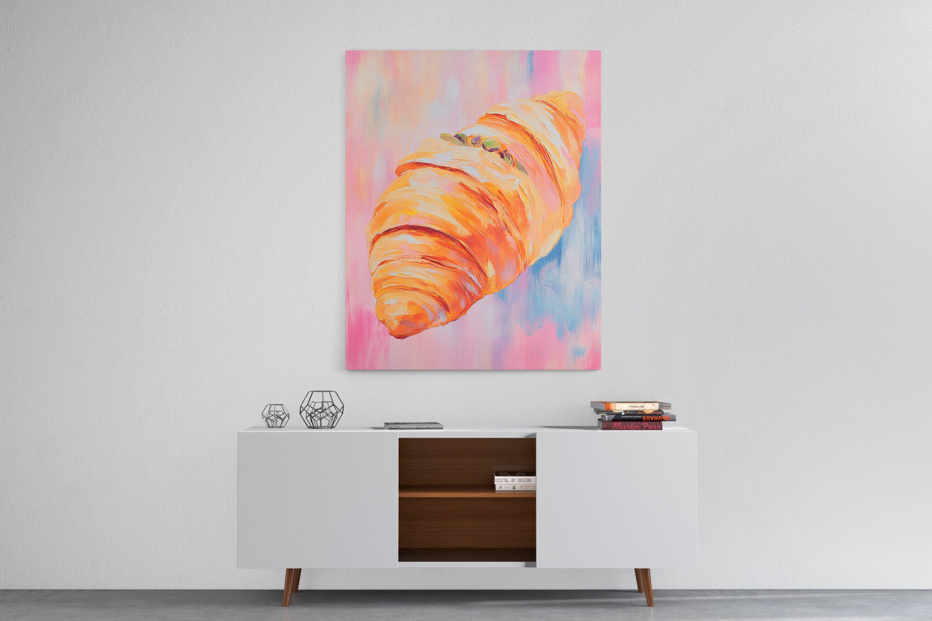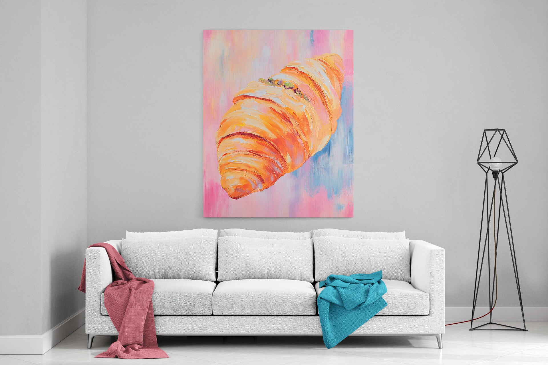 Een perfect gebakken croissant, weergegeven in warme tinten