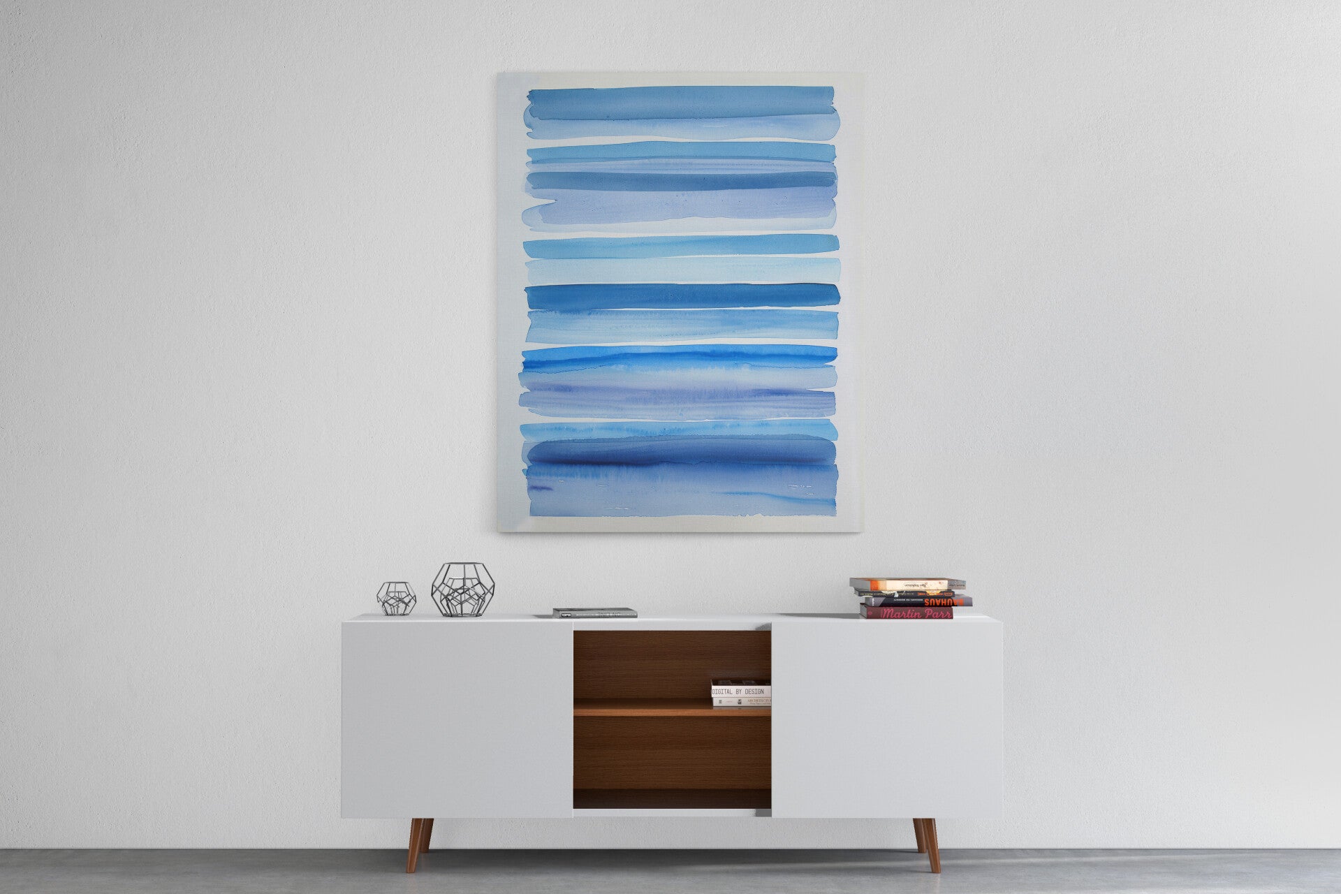 Een abstracte weergave van waterstromen in verschillende blauwtinten.