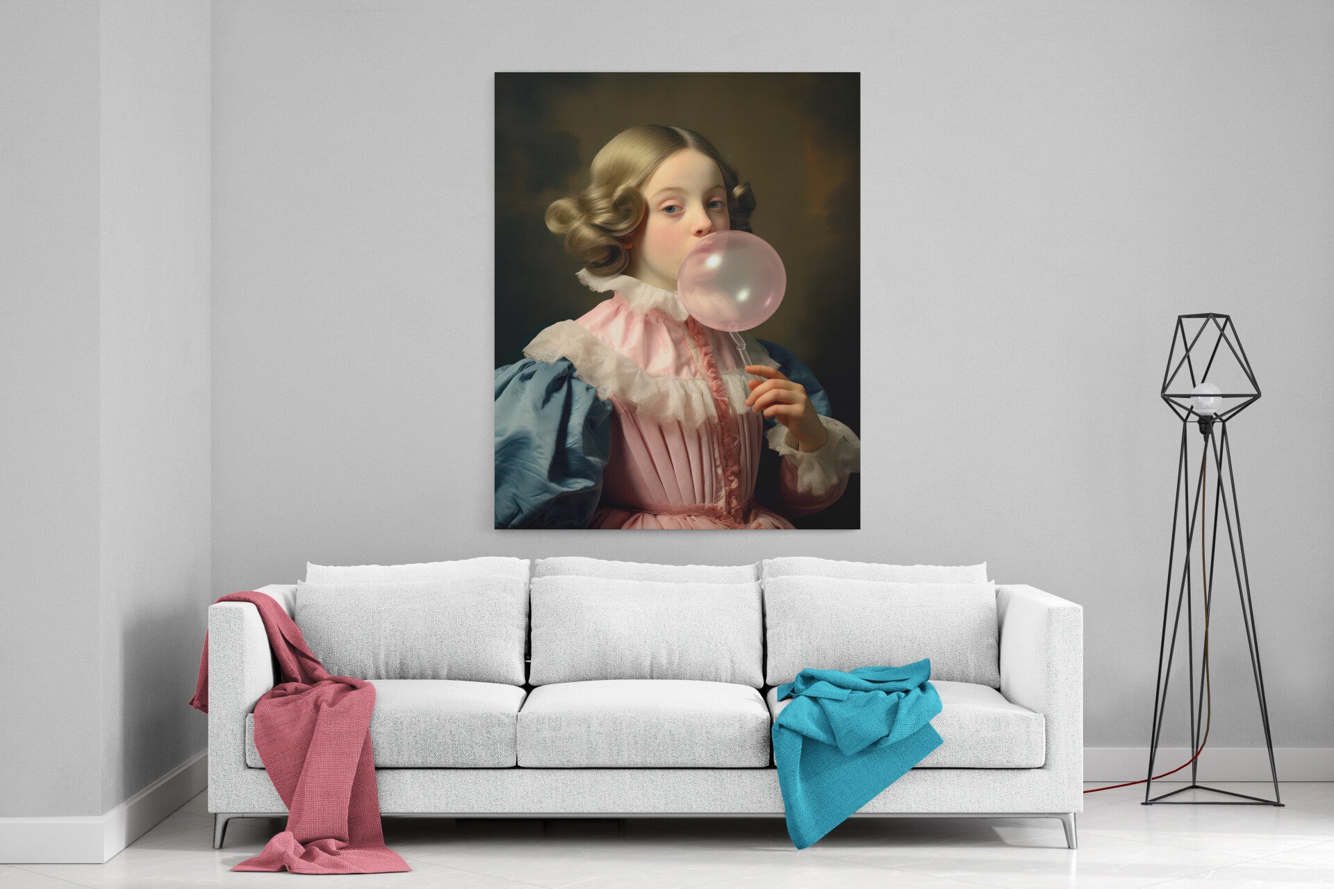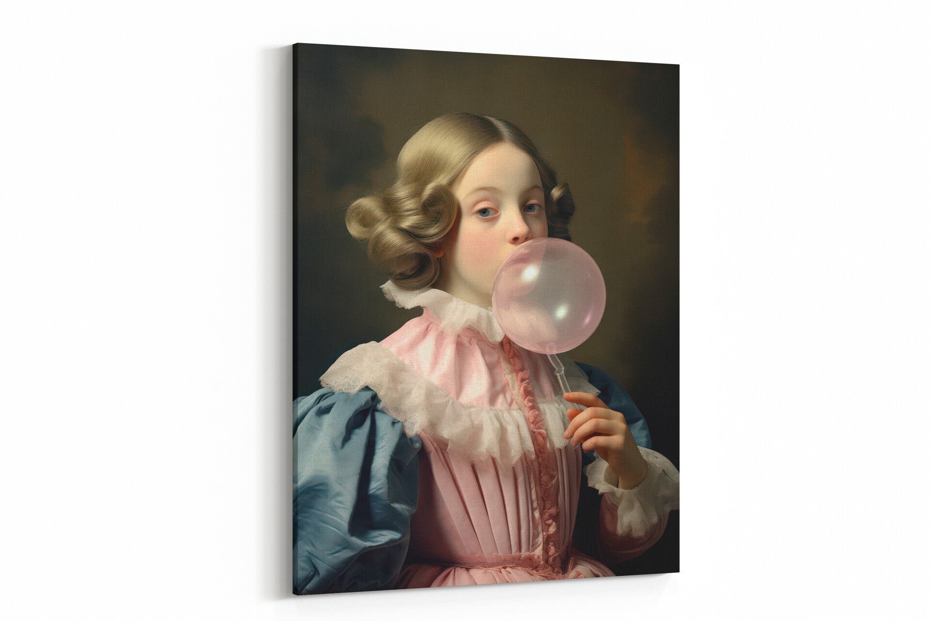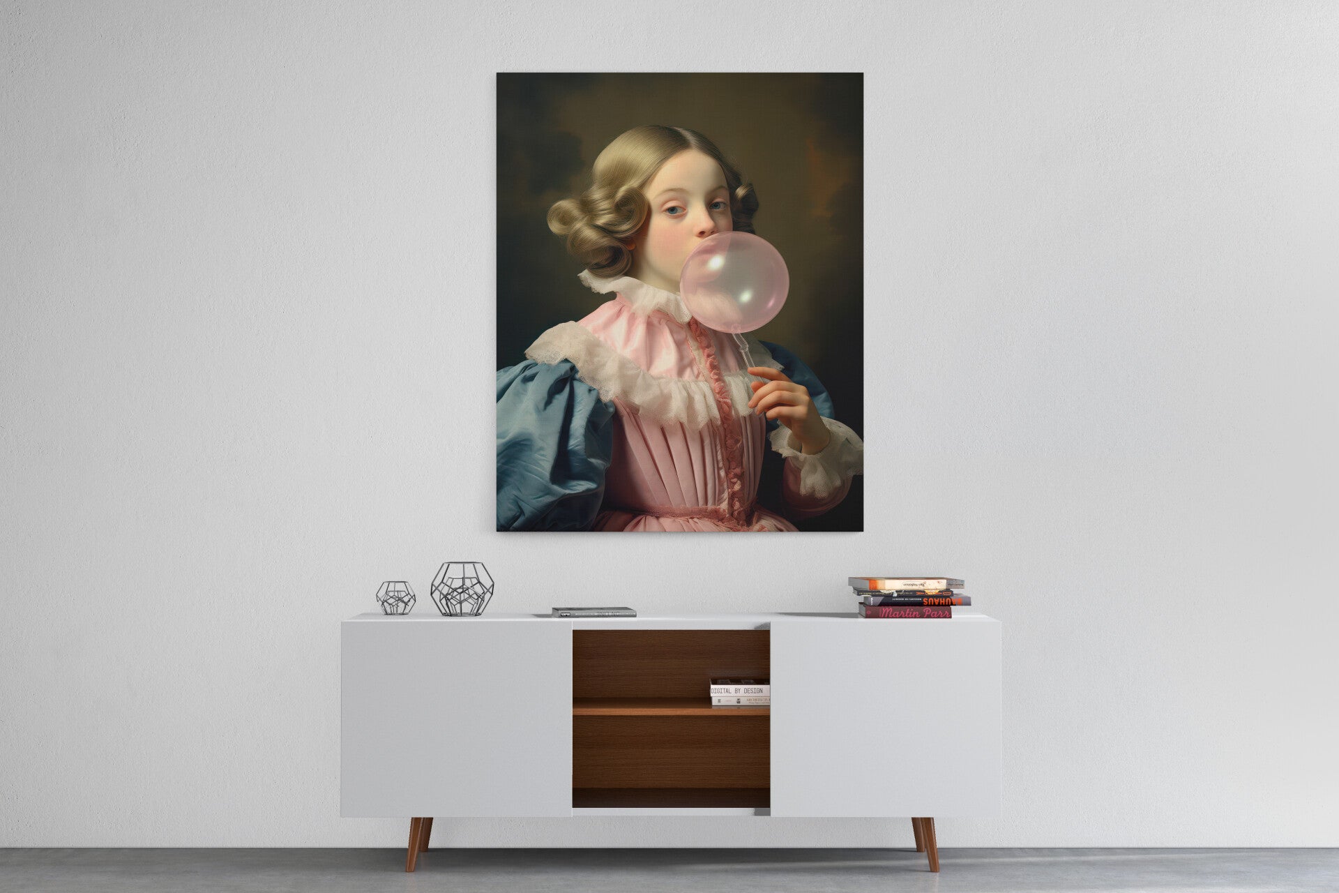 Een speelse twist op een historisch schilderij met een moderne bubbelgum toevoeging