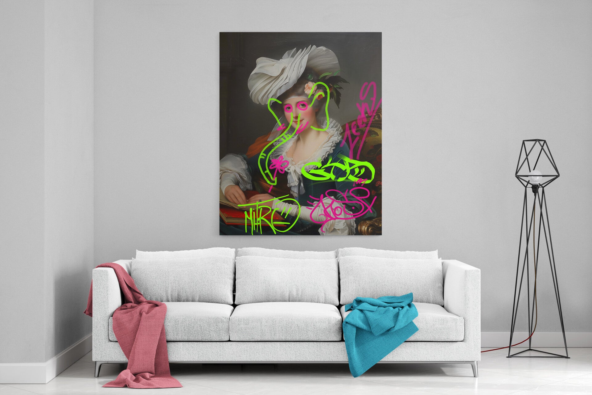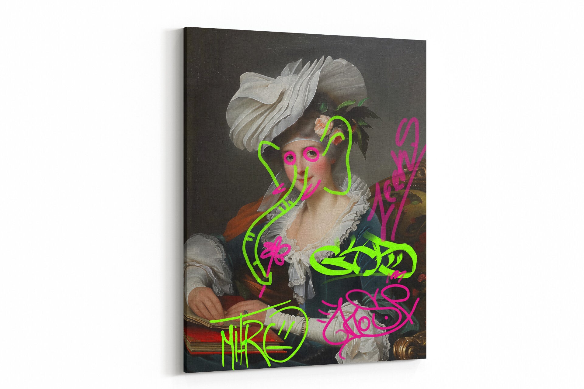 Een elegant historisch portret met speelse graffiti-elementen