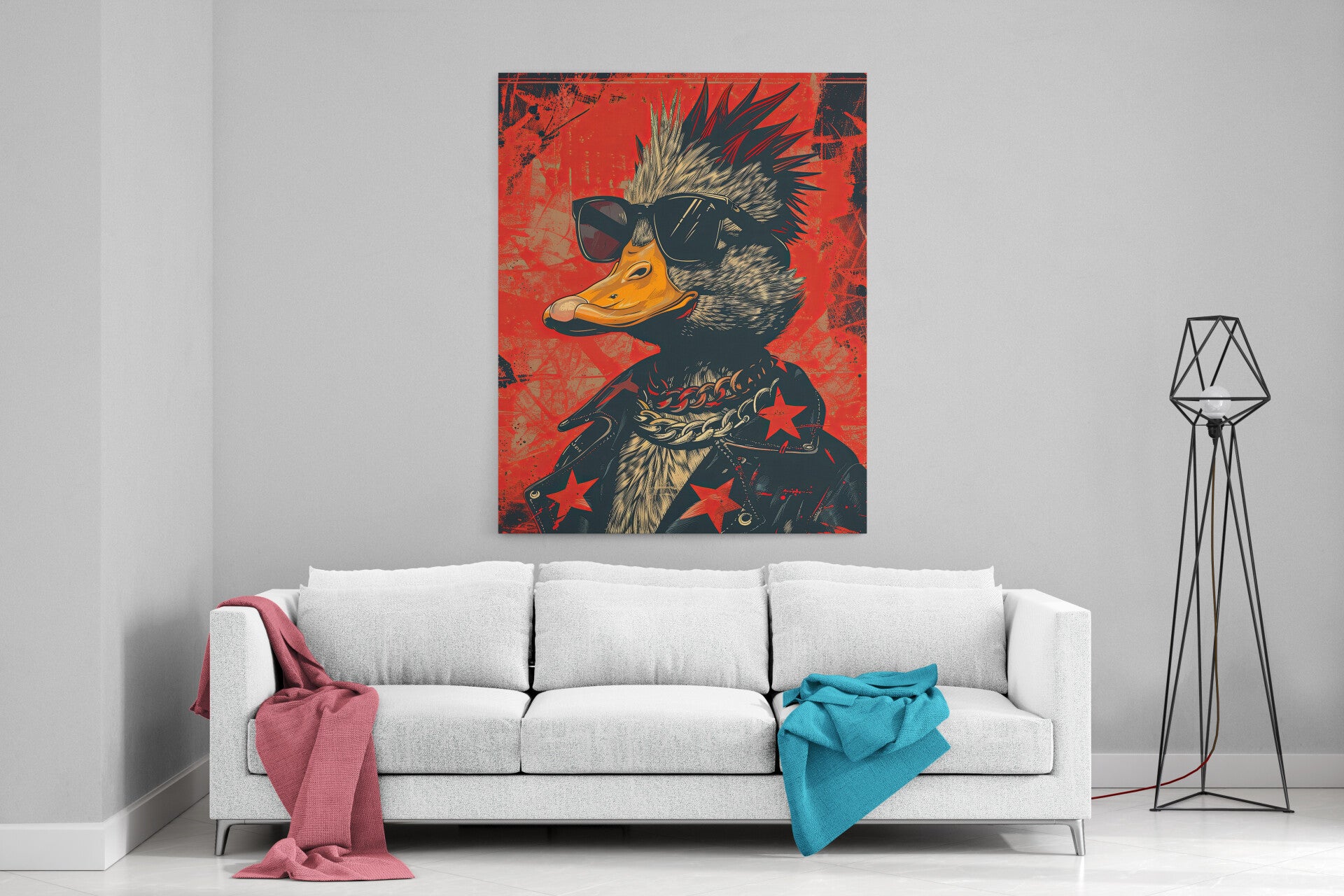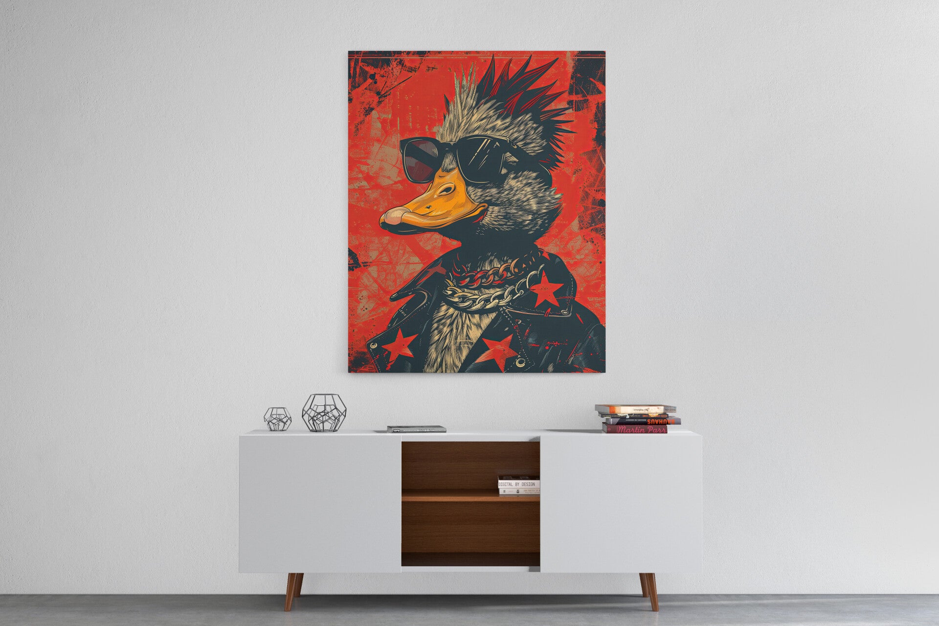 Een mysterieuze eend met een diepe blik en een opvallend jasje