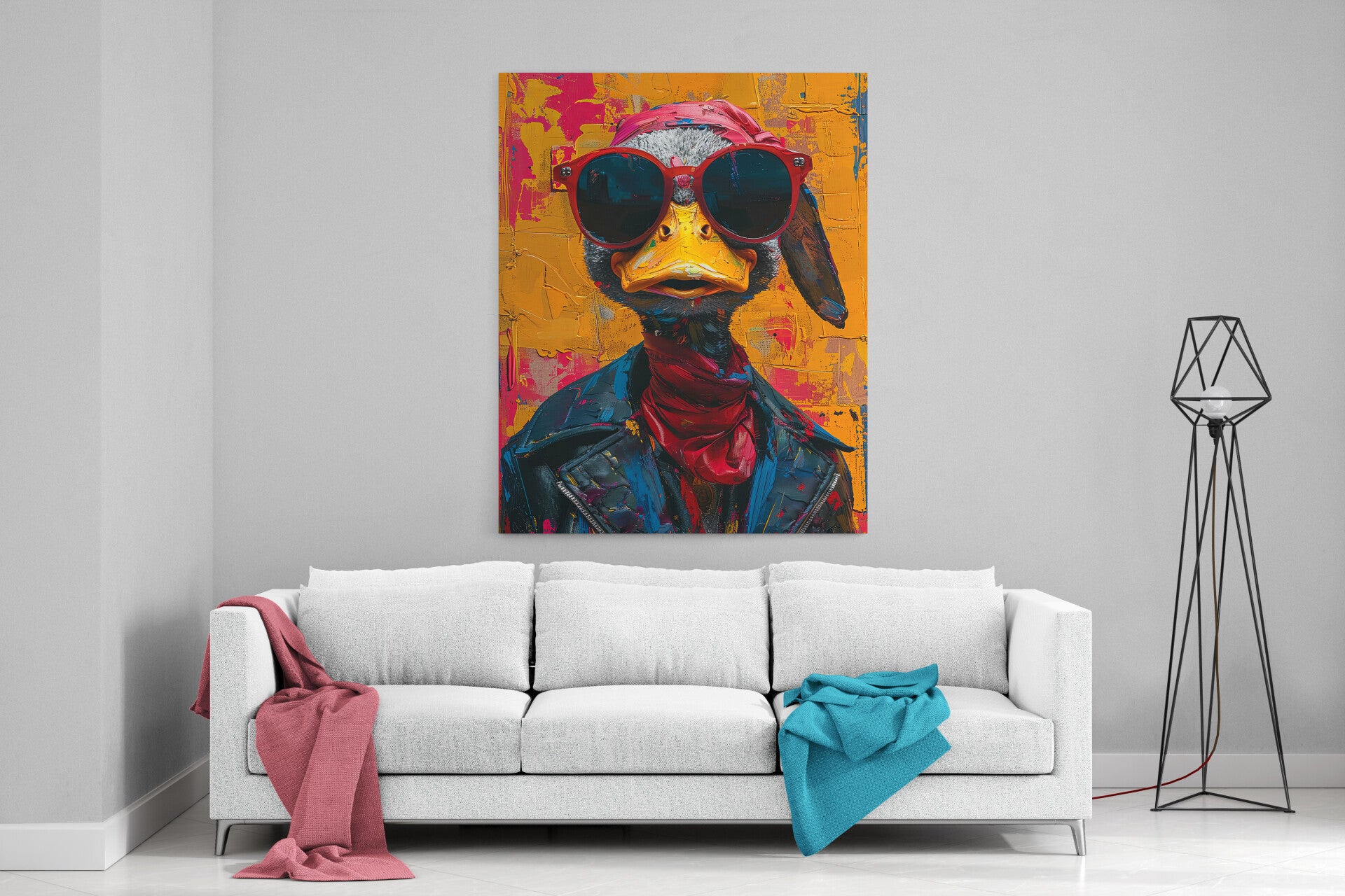 Eend met zonnebril en leren jack