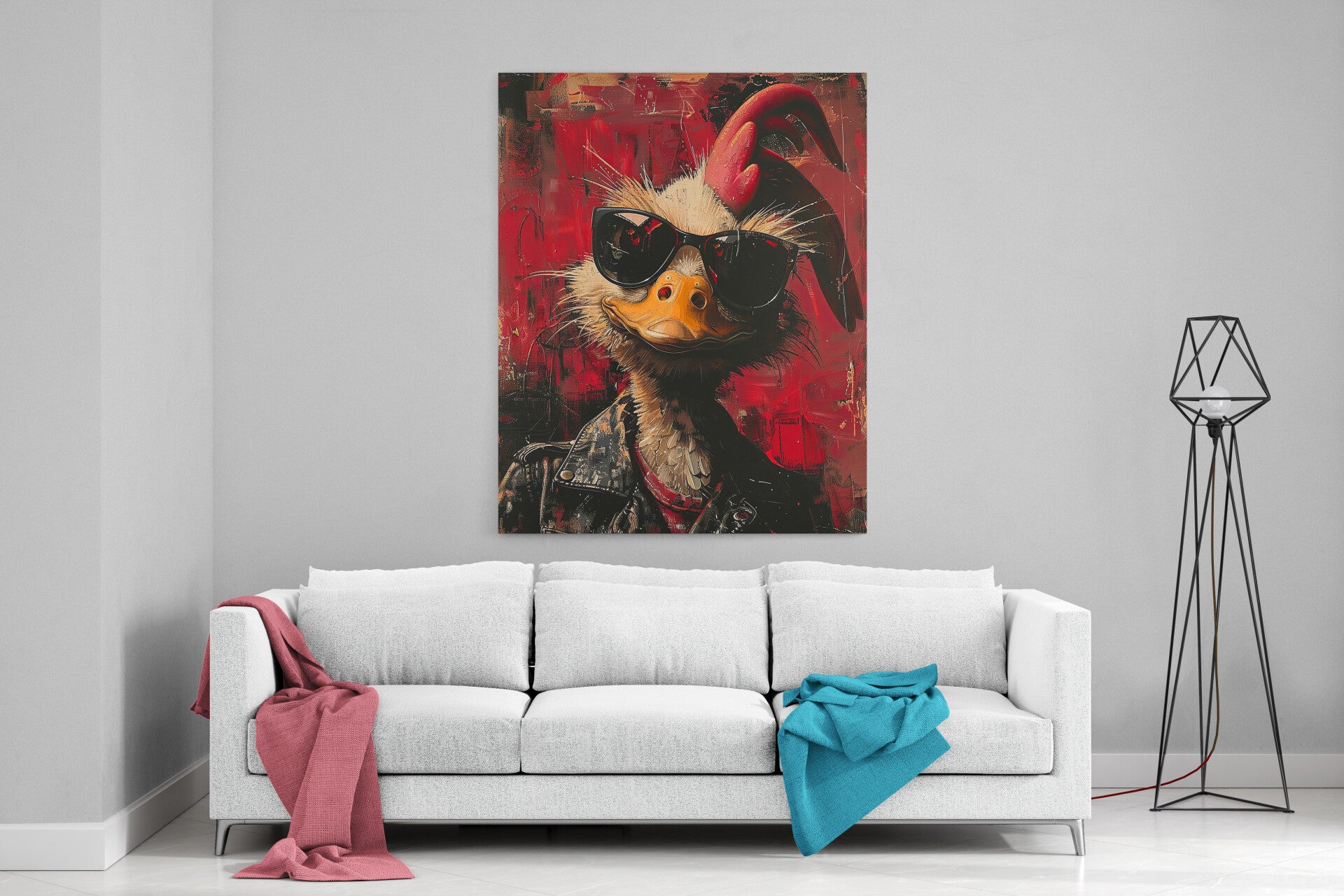 Een stoere eend met een punkstijl en een leren jas