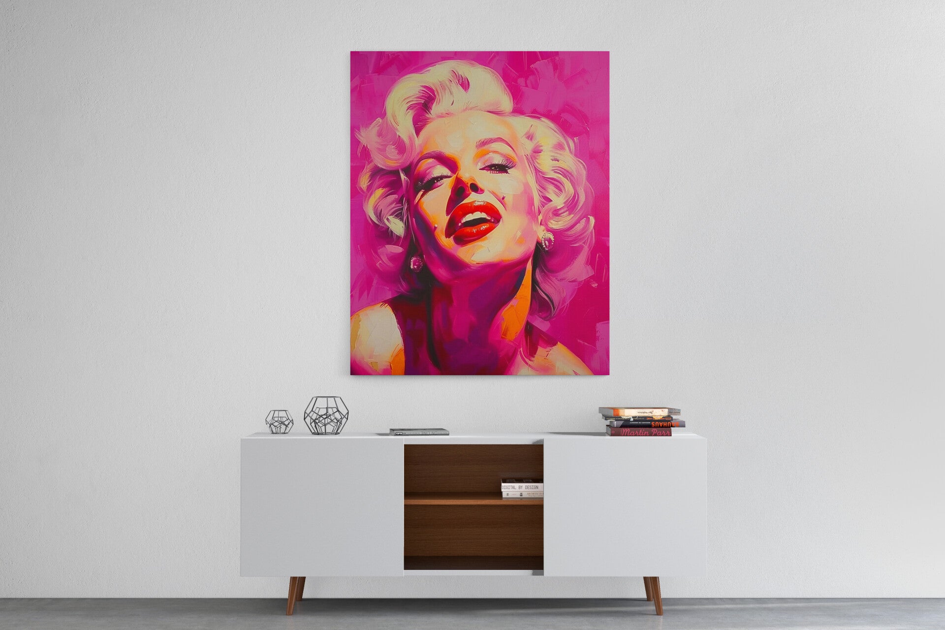 Een iconisch portret van Marilyn Monroe in een knallende roze uitvoering