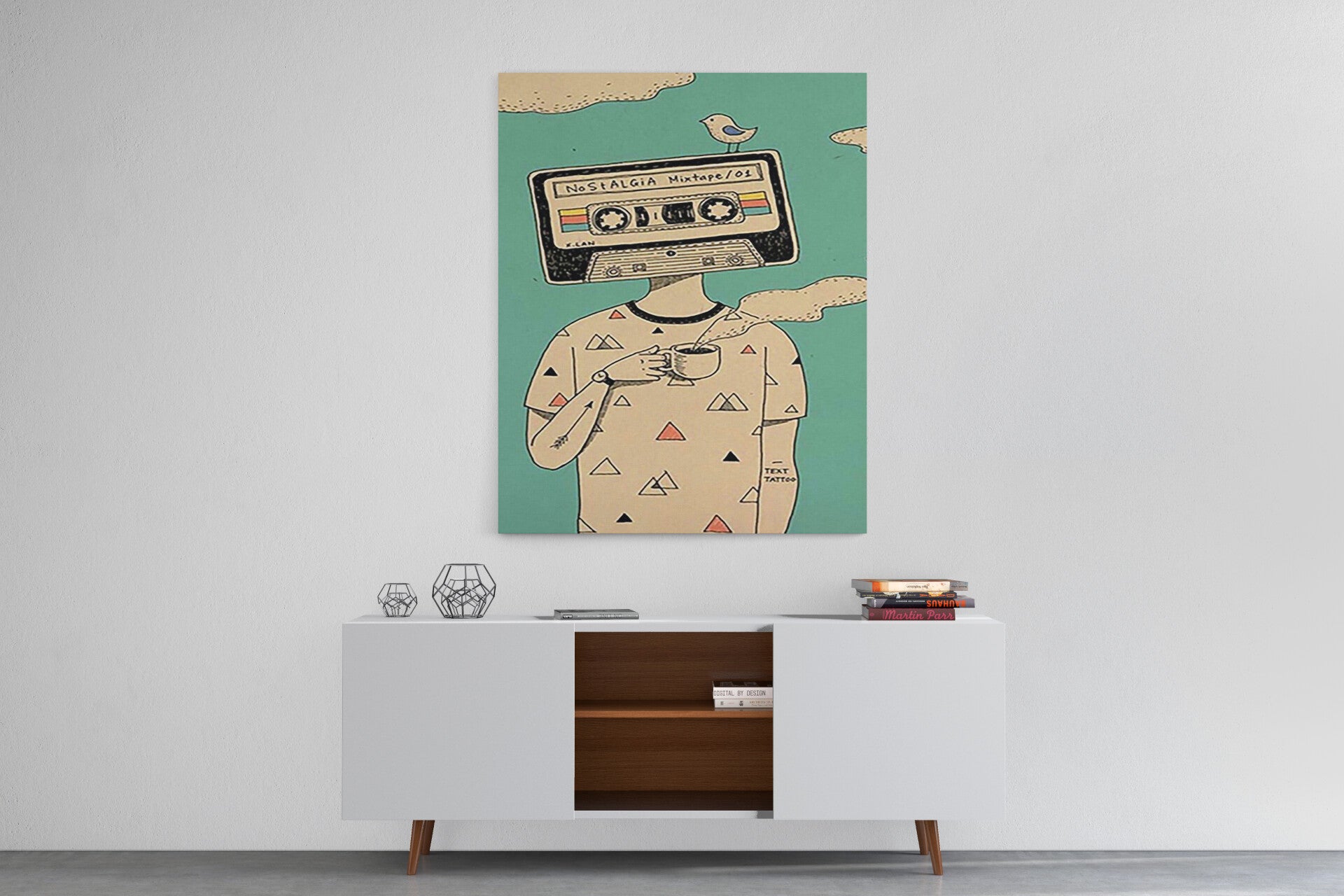 Een speelse en absurde pop-art afbeelding met een retro twist