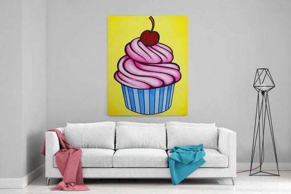 Een vrolijke en minimalistische pop-art illustratie van een zoete traktatie