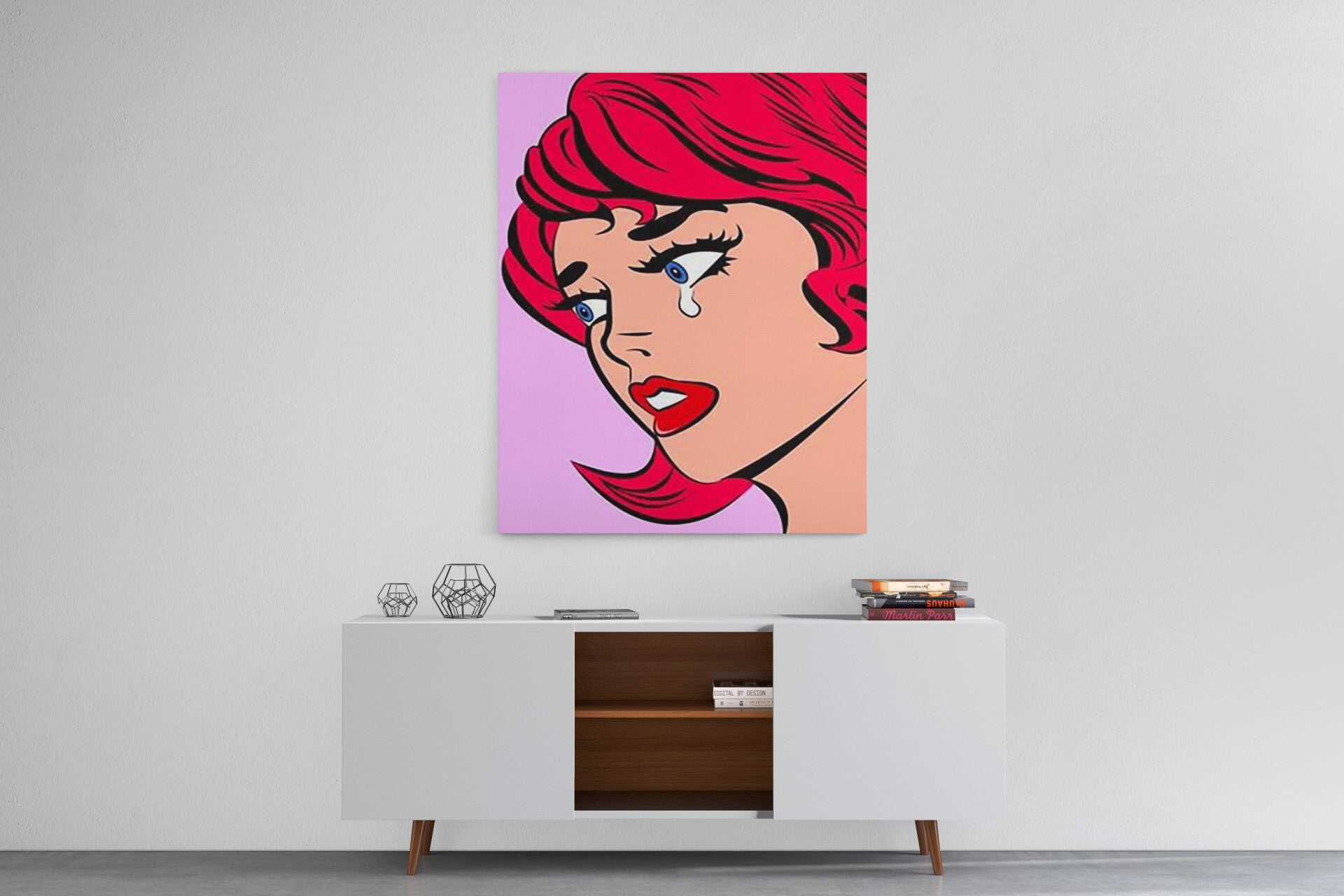Huilende vrouw in stripstijl
