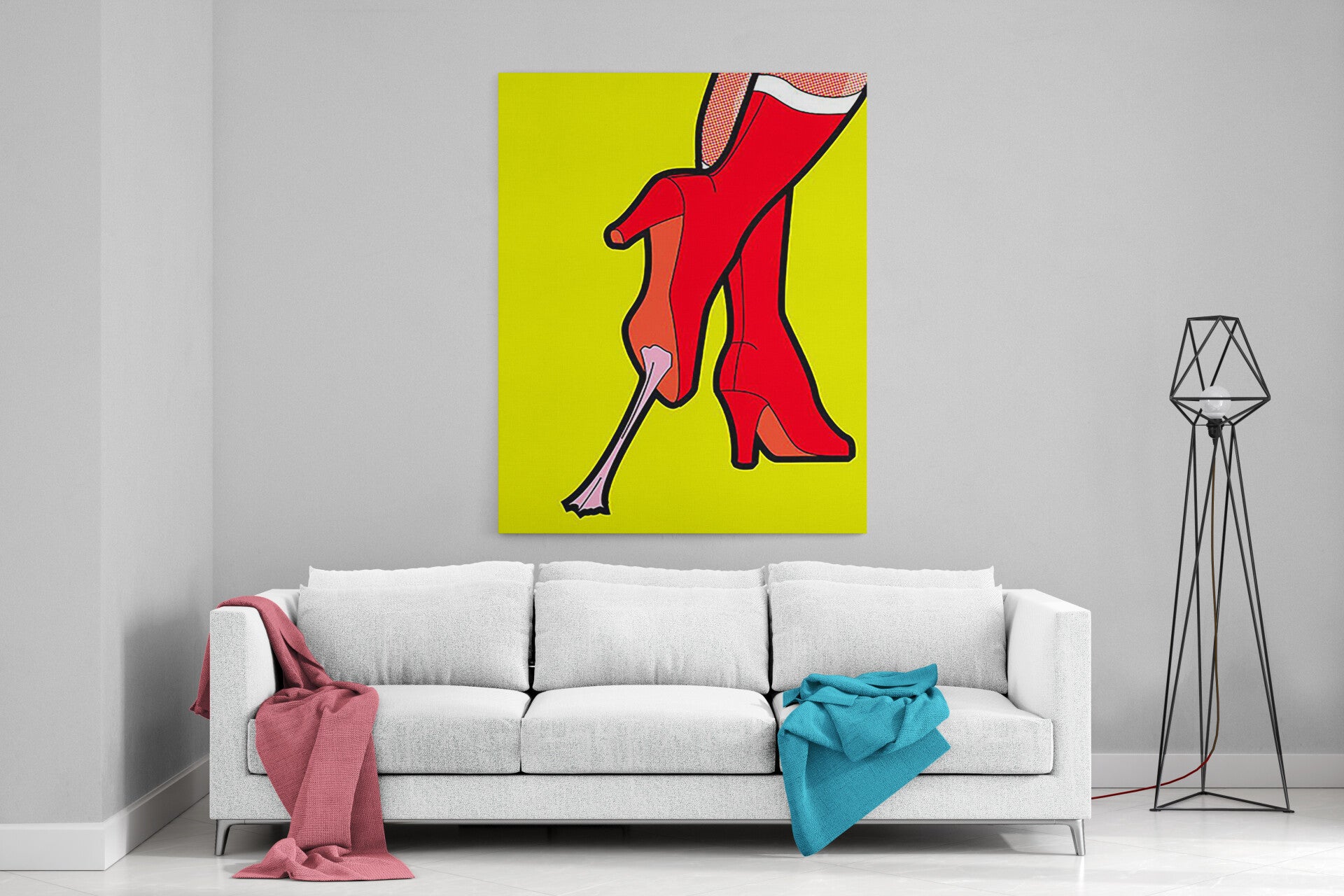 Een iconisch pop-art schilderij van elegante hakken in een minimalistische stijl