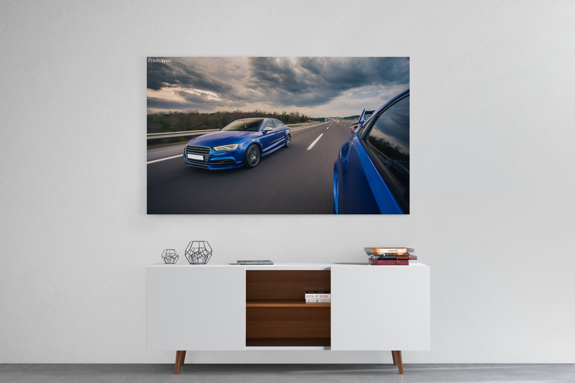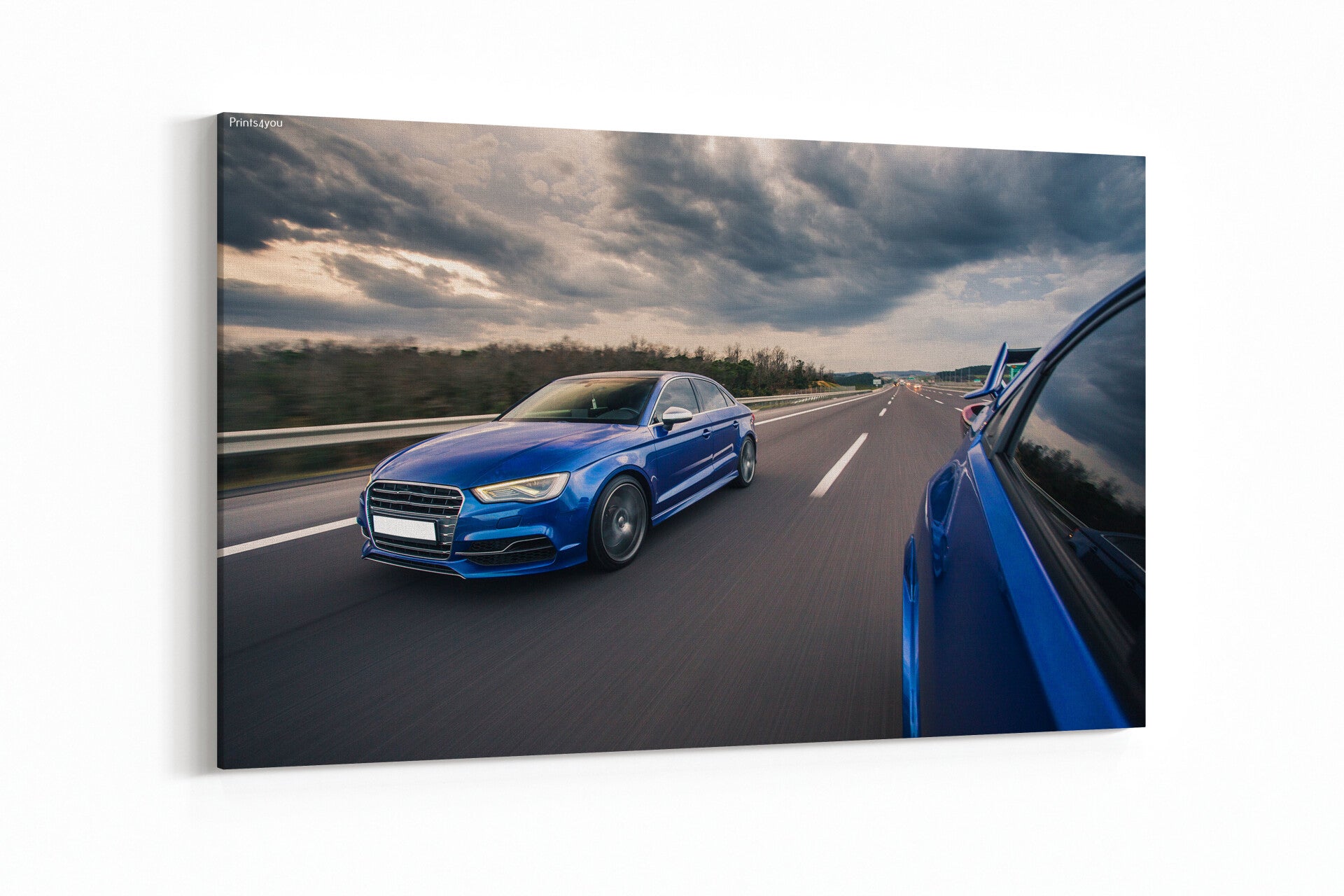 Blue sport cars racing on the highway