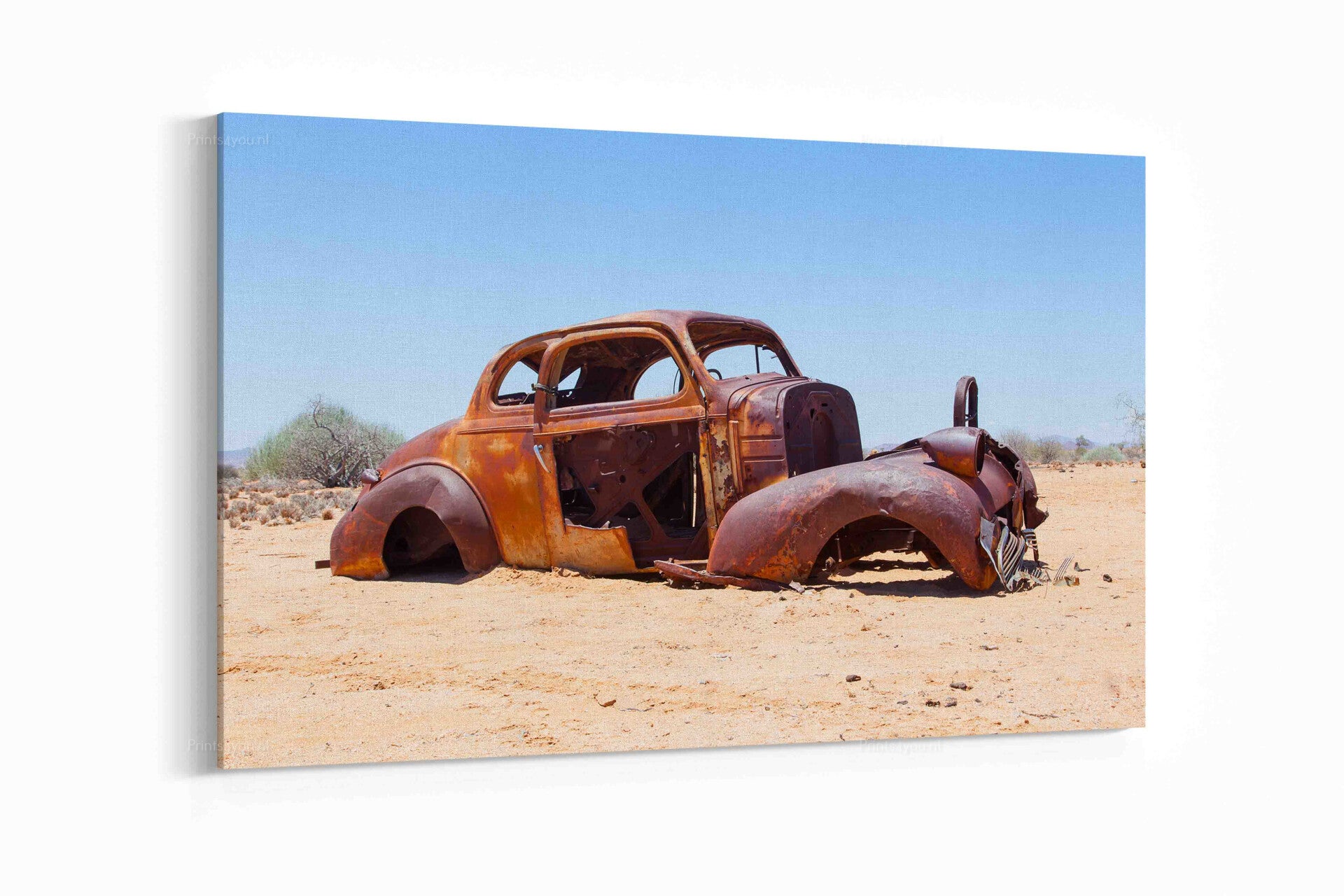 Schilderij - Verlaten auto in de Namib-Woestijn, Namibië