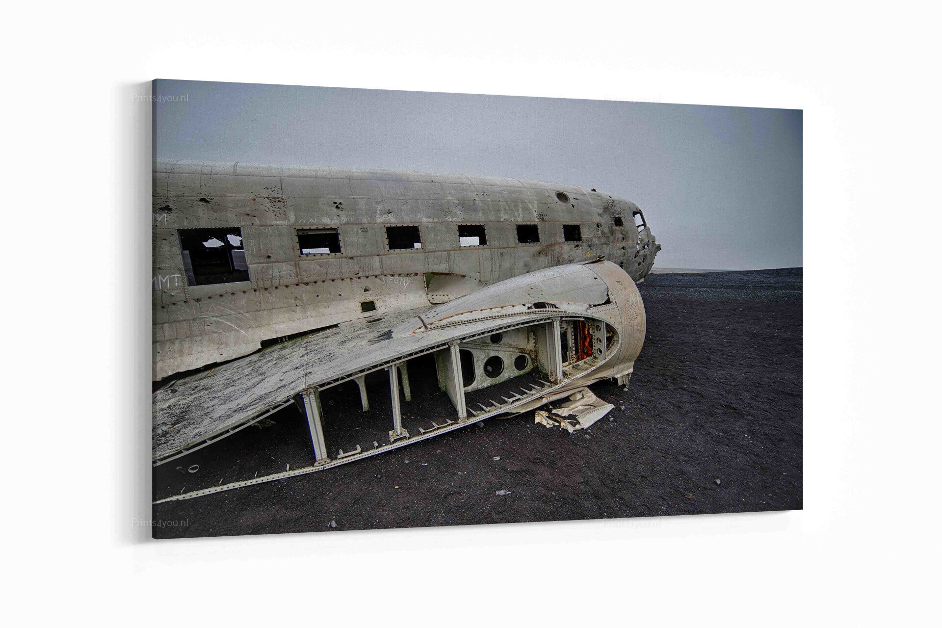 Schilderij - Verlaten vliegtuigwrak